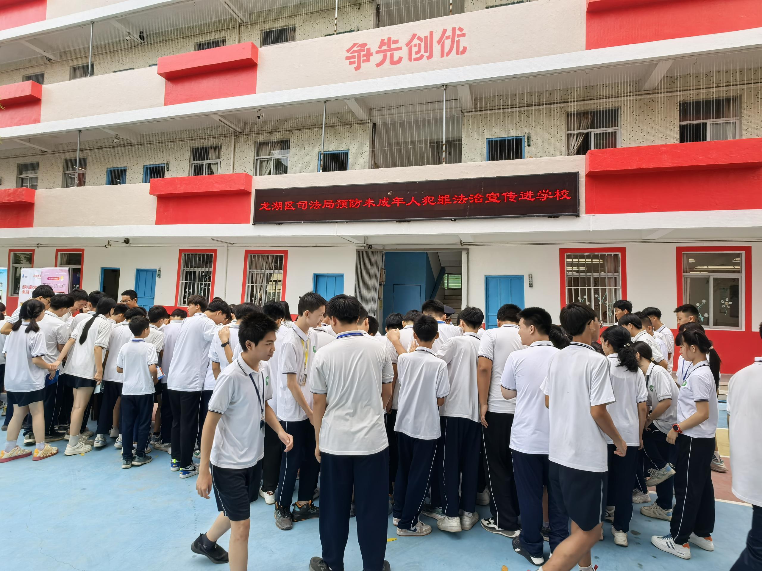 為深入推進(jìn)“八五”普法工作關(guān)于“加強(qiáng)青少年法治教育”的部署要求,充分發(fā)揮“開學(xué)第一課”教育作用,助力平安校園建設(shè)和法治校園建設(shè),9月4日上午,龍湖區(qū)普法辦、龍湖區(qū)司法局聯(lián)合龍湖區(qū)禁毒辦、龍湖區(qū)教育局、龍湖區(qū)市場監(jiān)督管理局、龍祥街道、龍祥司法所在龍湖區(qū)金英學(xué)校開展“法治進(jìn)校園”專題法治宣傳活動。