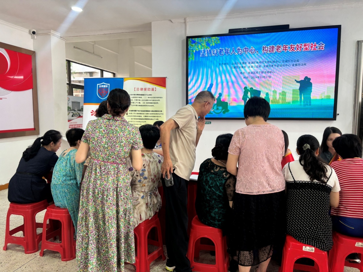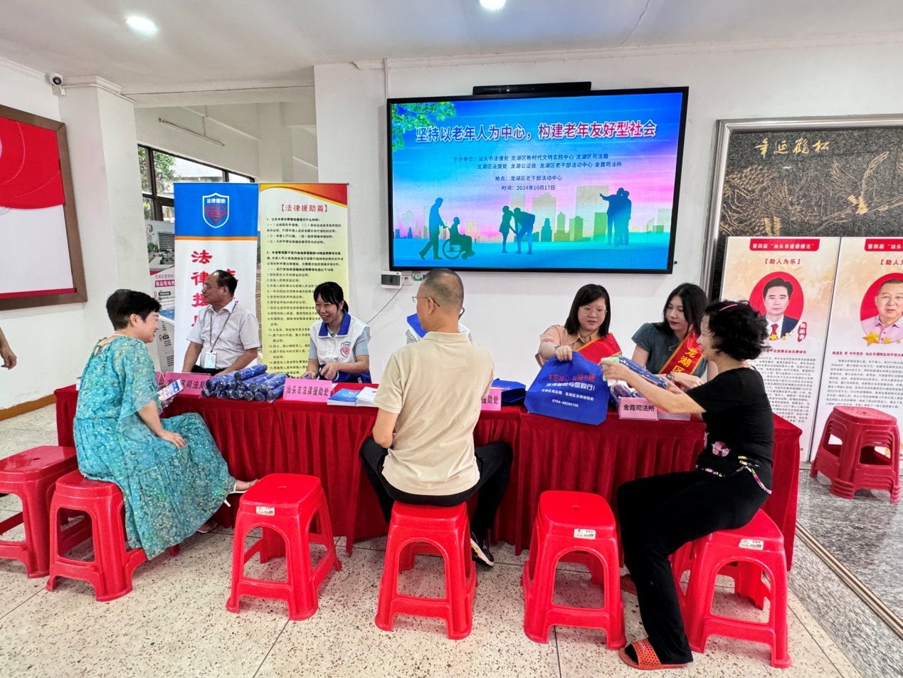 為貫徹落實積極應對人口老齡化國家戰略,弘揚中華民族孝親敬老傳統美德,維護老年人合法權益,大力營造養老孝老敬老社會氛圍,2024年10月17日上午,汕頭市法律援助處、龍湖區法律援助處聯合龍湖公證處、金霞司法所走進龍湖區老年人活動中心開展“堅持以老年人為中心,構建老年友好型社會”為主題的“敬老月”志愿服務活動。