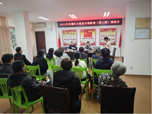 12月25日下午,區住建局組織各相關單位,在龍湖區衡山莊源源花園汕特龍湖住宅發展總公司二樓會議室召開2024年龍湖區第二批公租房實物配租儀式,根據《龍湖區本級公租房抽簽配租配租規則》,按照公開、公平、公正的原則,為符合龍湖區公租房保障條件的申請家庭對象進行抽簽分配房源。