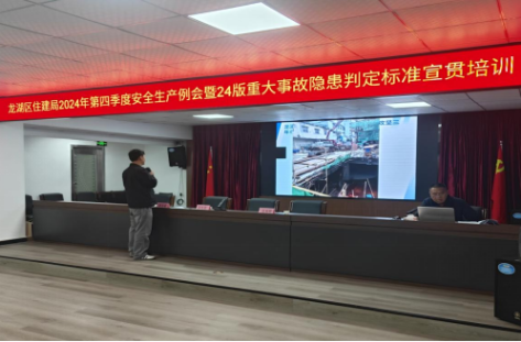 12月26日下午,龍湖區(qū)住建局召開2024年第四季度安全生產(chǎn)例會暨24版重大事故隱患判定標準宣貫培訓會。區(qū)住建局分管領(lǐng)導黃光毅、相關(guān)股室及中心負責同志,區(qū)屬在建工地建設(shè)、監(jiān)理、施工單位相關(guān)負責人共約200人參加會議。