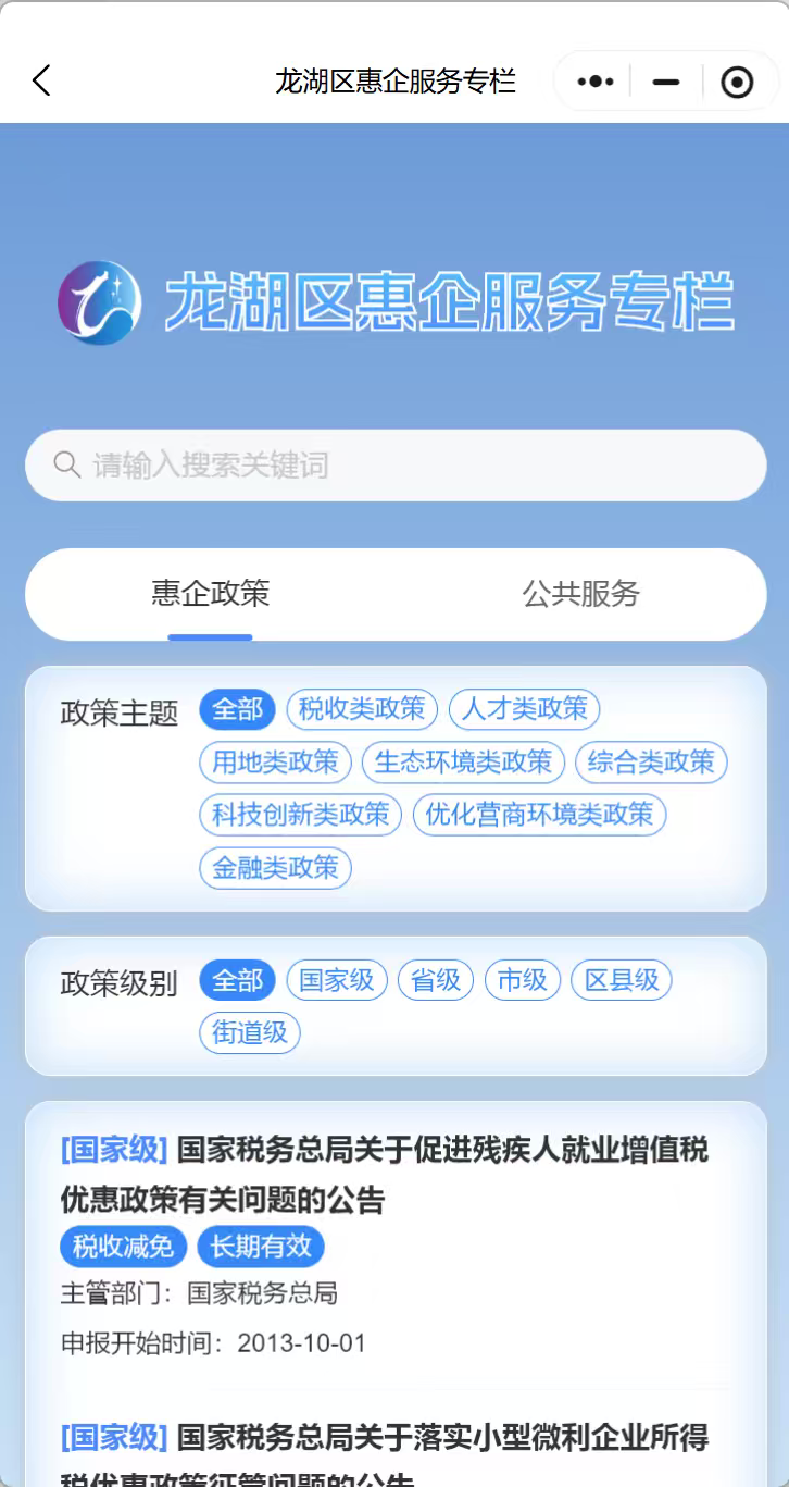 “龍湖區惠企服務專欄”接入以下網站或程序: