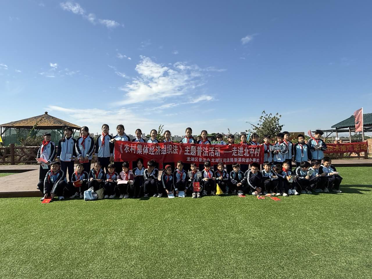 在第十二個國家憲法日來臨之際,為深入學習宣傳貫徹習近平法治思想,充分發揮法治在鄉村振興中的保障作用,促進新型農村集體經濟發展,近日,在市普法辦、市司法局指導下,由龍湖區普法辦、區司法局、新溪街道辦事處聯合主辦的“送法進鄉村”法治宣傳教育活動在北中村種養農民專業合作社舉行,活動通過“知識宣講—互動問答—田間實踐”的沉浸式方案為新溪中心小學學生量身定制法治教育新場景。