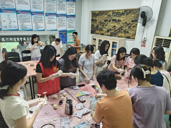 活動現(xiàn)場,志愿者先介紹了中秋節(jié)起源、傳統(tǒng)習俗及文化傳承,增強大家文化自信,感受文化精髓。隨后,還講解了制作冰皮月餅的方法技巧和注意事項,從稱量材料、攪拌面團,到包餡成型、壓模脫模等流程,沉浸式體驗了制作月餅的樂趣,營造了濃厚的中秋節(jié)氛圍。現(xiàn)場還開設了DIY香包制作環(huán)節(jié),在一針一線中,一個個小巧精致香包逐漸成型,不僅寄托了團圓與美滿的寓意,更讓大家深層次理解傳統(tǒng)文化意義,進一步弘揚傳承優(yōu)秀文化。