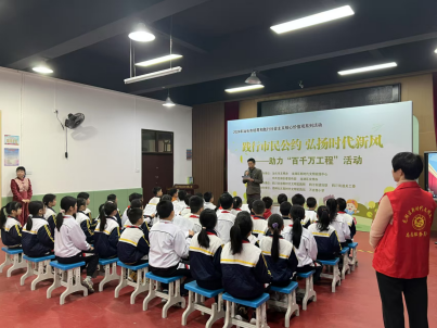 活動現場,首先播放了《汕頭經濟特區文明行為促進條例》動漫視頻,用通俗易懂的視頻形式向學生們宣傳文明行為知識,隨后,由文明宣講員帶領大家宣讀《汕頭市民文明公約》,號召學生們要自覺遵守公約和增強文明意識。活動中還設置了答題游戲環節,通過知識問答的方式寓教于樂,提高了學生們對《汕頭經濟特區文明行為促進條例》的知曉率。同時,還向學生們發放相關資料,引導學生們成為文明公約的學習者、宣傳者和踐行者,共同營造守望相助、崇德向善的良好社會氛圍。