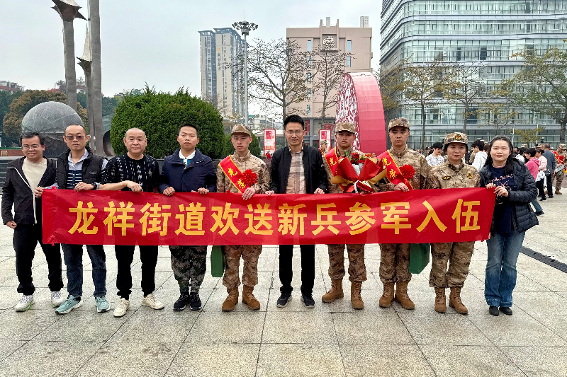 此外,龍祥街道還舉辦了一系列征兵宣傳活動,包括聯合街道多個部門舉辦國防教育講座、軍事日活動、聽退伍老兵講述軍旅故事、新兵入伍歡送會、革命樹下的紅色旋律歌詠會、邀請書法家為青年寫春聯送祝福等活動。同時,街道積極做好擁軍優屬工作,通過為退伍軍人定制專屬紀念勛章,懸掛“光榮之家”牌匾,做好優撫慰問工作,讓軍人軍屬感受到社會的尊重和關愛。