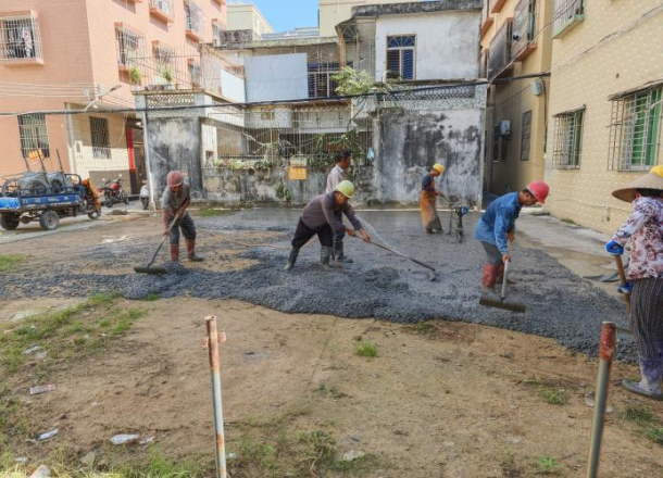 在金津社區閑置宅基地及滴水巷硬底化工程現場,混凝土攪拌車穿梭往來,施工機械轟鳴作業,工人與村民代表協同配合,這幅“政企民同頻、工料機共振”的建設圖景,正是基層治理新范式的生動縮影。在“村企民”三方共同努力下,昔日雜草叢生、坑洼不平的區域,如今變成了平坦整潔的路面,社區整體面貌實現華麗蝶變。