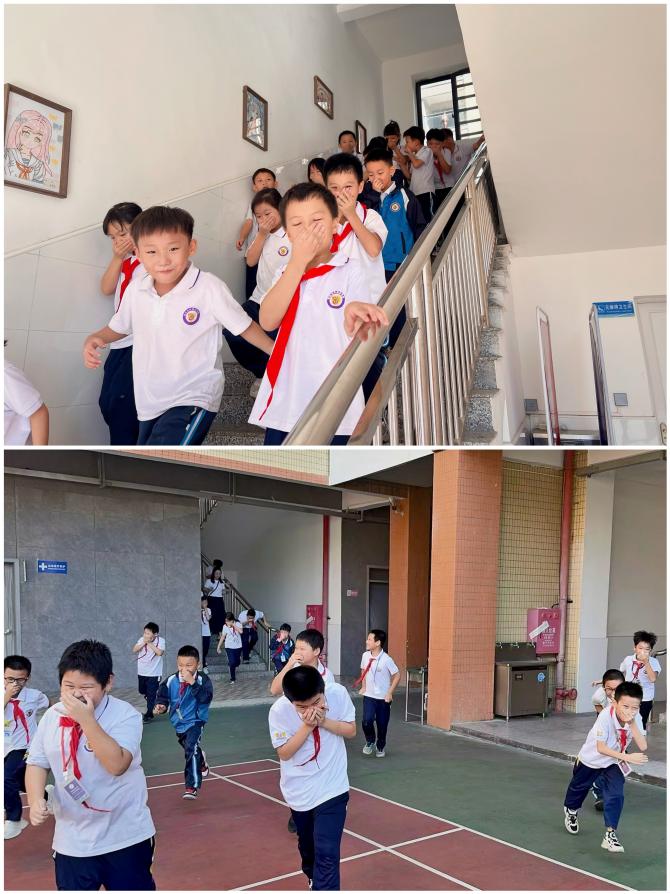 活動開始,隨著急促的警報聲響起,校園消防安全應急演練正式啟動。各班級師生迅速響應,按照預定疏散路線,在班主任及任課教師的引導下,彎腰捂鼻、快速有序地向指定安全區域緊急集結。整個疏散過程緊張有序、規范高效,短時間內便完成全體師生安全撤離,充分展現了學校日常消防安全教育的扎實成效。
