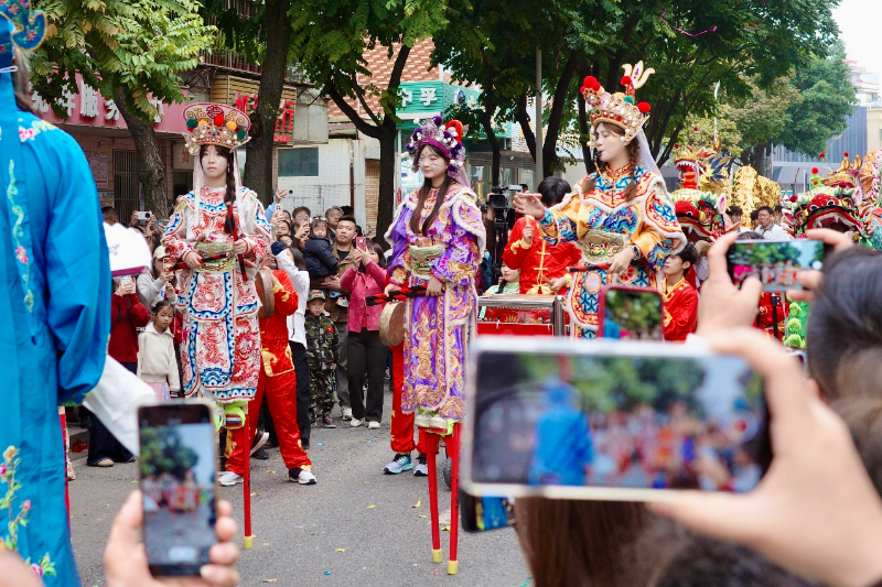 “快看!高蹺隊(duì)來了!”人群中一陣歡呼。今年的巡游在保留傳統(tǒng)項(xiàng)目的基礎(chǔ)上,新增了踩高蹺隊(duì)伍。只見隊(duì)員們身著艷麗服飾,步伐從容地行走在比人還高的木蹺上,引得沿途群眾踮腳張望,掌聲、叫好聲此起彼伏。