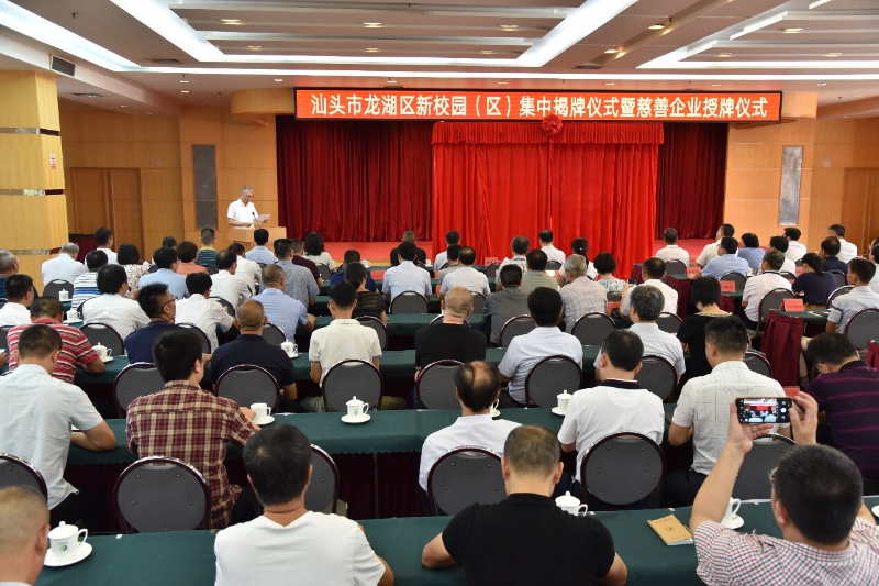 隨后區委副書記、區長柯延鵬在活動現場為6熱心參與捐建校園(含設備配套)、積極支持教育發展的慈善企業授牌致謝分別是:捐資600萬元的廣東中藍房地產有限公司(深源地產);捐資500萬元的汕頭市龍光房地產有限公司;捐資100萬元的廣東泰安房地產集團有限公司;捐資100萬元的廣東國廈投資控股集團有限公司;捐資100萬元的汕頭市南信房地產開發有限公司;捐資80萬元的廣東華福集團有限公司等