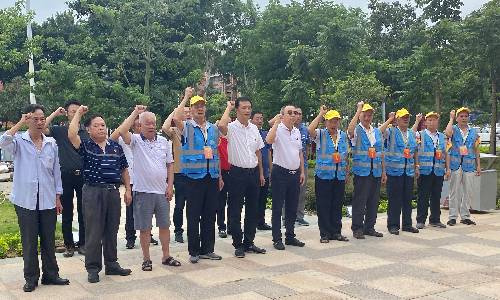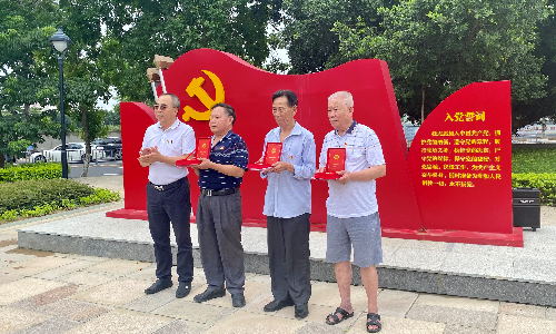 活動中,在場同志在“革命樹”下的宣誓臺共同重溫入黨誓詞,鏗鏘有力的宣誓聲響徹廣場。張義良常委、鄭元錳書記及街道黨工委黃海鑫副書記為9名老黨員代表頒發(fā)紀念章,并送上慰問金。