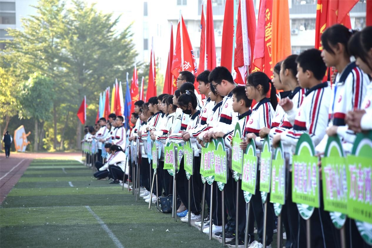 在開幕式現場,伴隨著激昂的進場音樂,91支學校代表隊和裁判員代表隊在國旗方陣的引領下,踏著整齊的步伐昂首步入會場。學生們英姿颯爽,身著統一服裝,精神抖擻,以飽滿的熱情向在場人員展示龍湖學子昂揚的精神面貌。