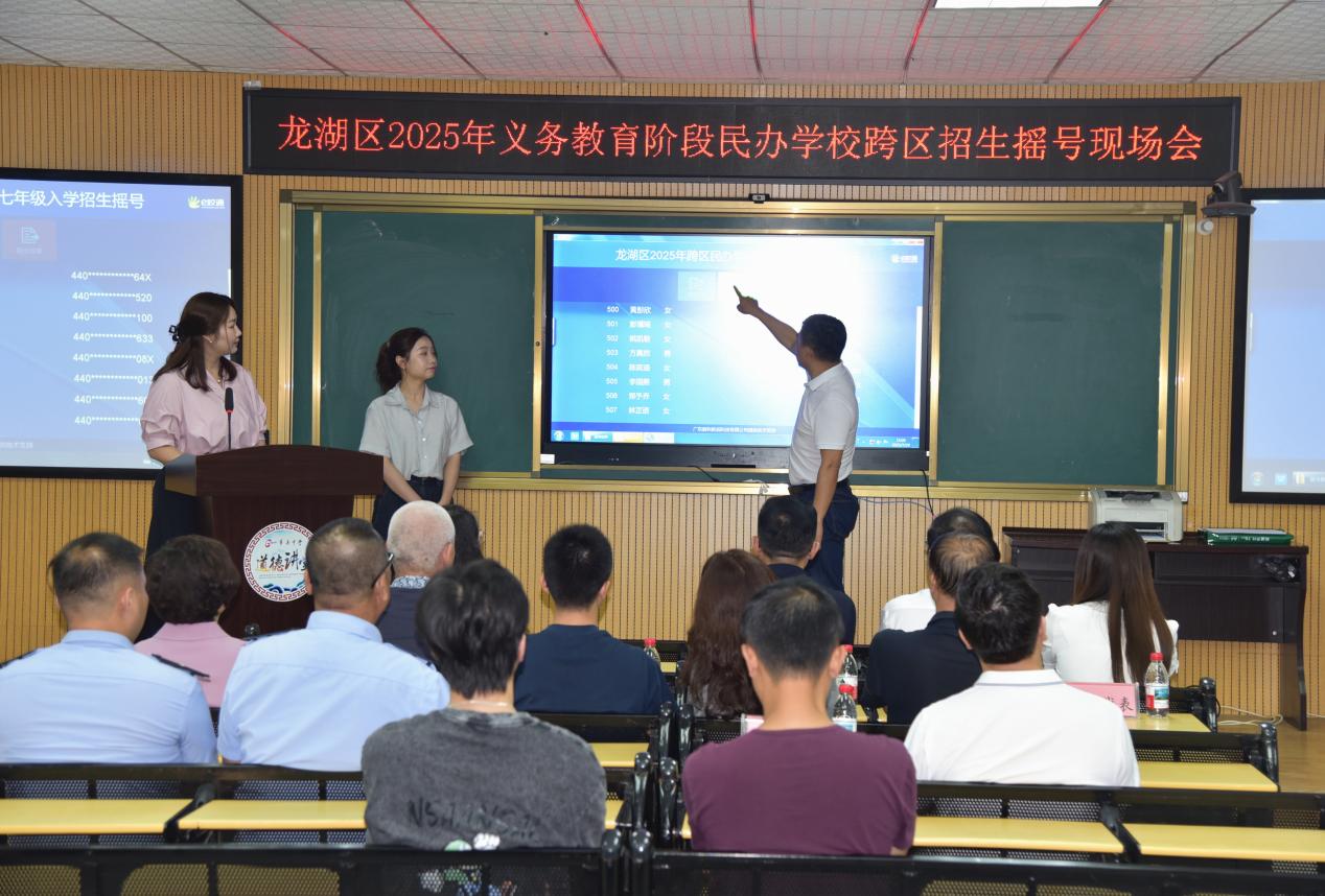 7月29日下午,龍湖區招生工作領導小組在翠英中學舉行2025年義務教育階段民辦學校跨區招生搖號現場會,對報名人數超過跨區招生計劃數的龍湖區碧華實驗學校采用電腦隨機搖號方式進行跨區招生錄取。