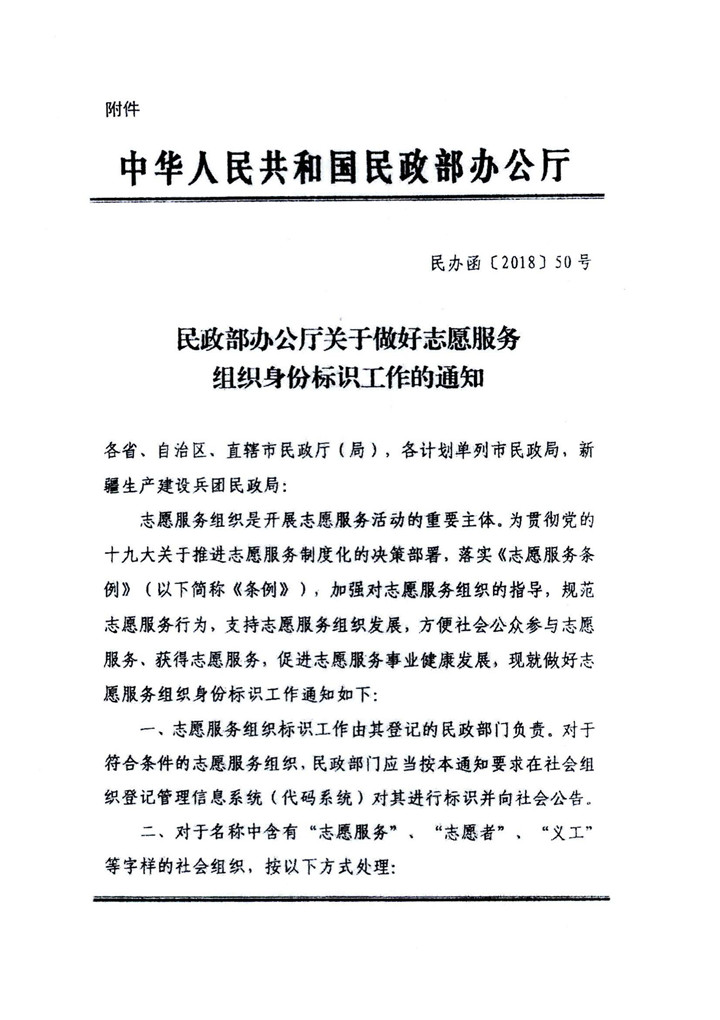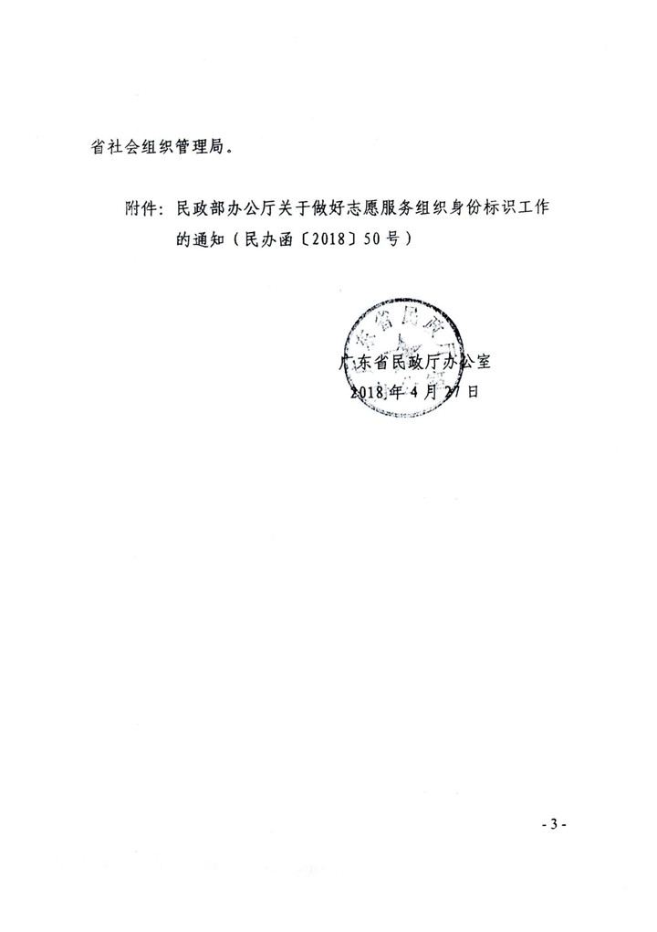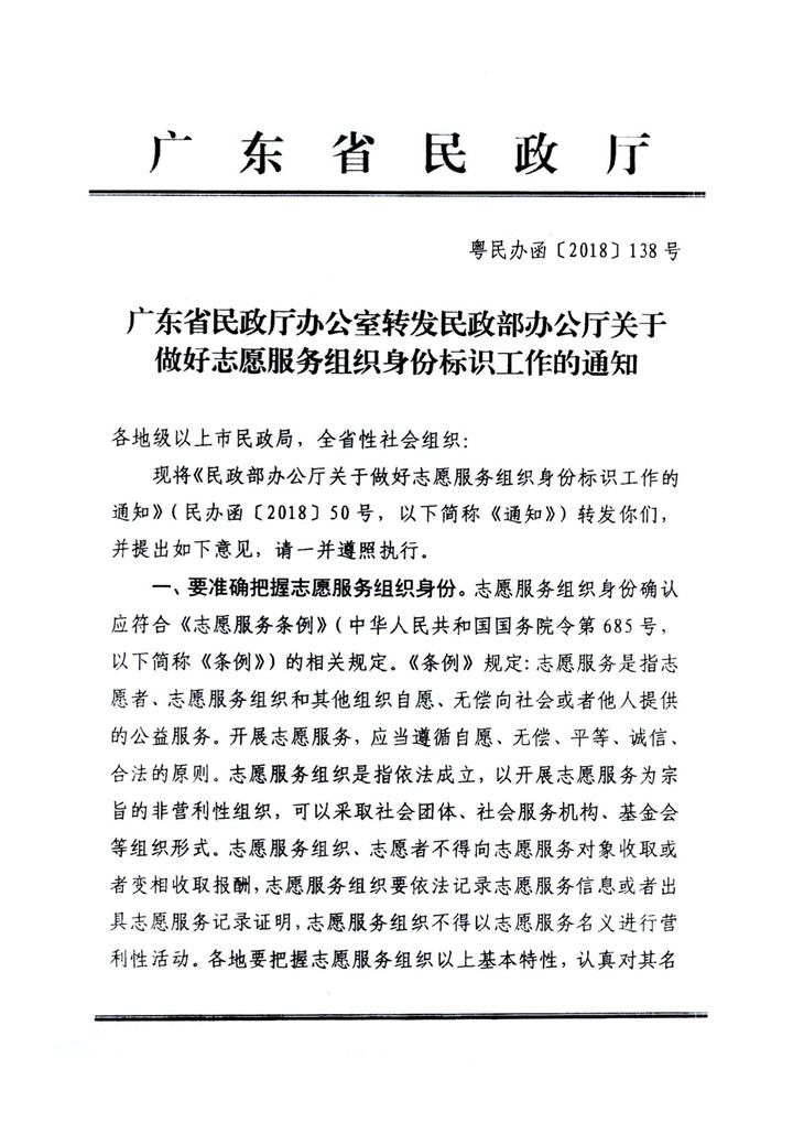 關于轉發《廣東省民政廳辦公室轉發民政部辦公廳關于做好志愿服務組織身份標識工作的通知》的通知