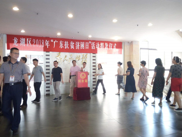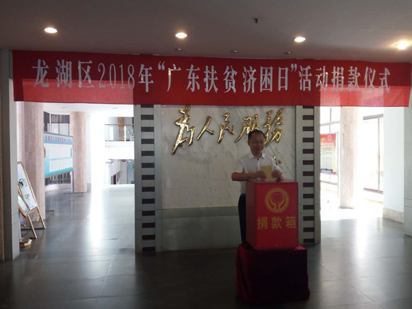 當前,龍湖區上下正深入學習習近平新時代中國特色社會主義思想和黨的十九大精神,全面落實習近平總書記重要講話精神,大力弘揚敢闖敢試、敢為人先、埋頭苦干新時代特區精神,奮力把龍湖建設成為改革開放先行區、創新發展引領區、高端產業集聚區、優質民生展示區、基層治理試驗區。今天這個扶貧濟困日捐款活動,就是建設優質民生展示區的一個具體行動,是對扶貧濟困、樂善好施優良傳統的一種弘揚,對慷慨解囊、無私奉獻慈善精神的一次倡導。