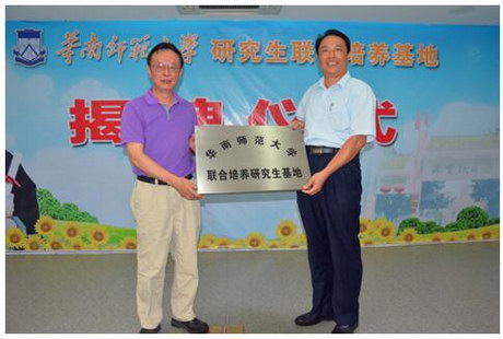 7月8日上午,華南師范大學(xué)與龍湖區(qū)教育局在汕頭經(jīng)濟(jì)特區(qū)林百欣中學(xué)會議廳舉行“華南師范大學(xué)校級聯(lián)合培養(yǎng)研究生基地”授牌儀式,正式宣告汕頭經(jīng)濟(jì)特區(qū)林百欣中學(xué)成為華南師范大學(xué)校級聯(lián)合培養(yǎng)研究生基地。