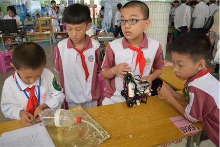 承辦單位蓬鷗中學(xué)經(jīng)過(guò)兩個(gè)多月的籌劃布展,大賽現(xiàn)場(chǎng)科學(xué)合理有序。同時(shí),蓬鷗中學(xué)還組織了50多名師生成立大賽科普志愿者服務(wù)隊(duì),為創(chuàng)新比賽提供全面而專業(yè)的服務(wù),確保大賽圓滿成功。青少年科技創(chuàng)新大賽核心是創(chuàng)新,本屆大賽也進(jìn)行了大膽創(chuàng)新。首先是第一次交給學(xué)校承辦,體現(xiàn)了學(xué)校是青少年創(chuàng)新能力培養(yǎng)的重要陣地,讓大賽走進(jìn)校園,此為組織創(chuàng)新。二是對(duì)以往賽事進(jìn)行總結(jié),把賽場(chǎng)劃分、展位布置與賽事環(huán)節(jié)緊密結(jié)合,大賽有序高效,此為過(guò)程創(chuàng)新。三是第一次有了科技企業(yè)參加,實(shí)現(xiàn)現(xiàn)場(chǎng)互動(dòng)和產(chǎn)品對(duì)接,此為參與范圍創(chuàng)新。四是邀請(qǐng)南方日?qǐng)?bào)新媒體中心“南方+”,進(jìn)行了“厲害了我的少年”為主題的全程同步互動(dòng)直播,使賽事科技感十足,此為報(bào)道創(chuàng)新。本屆創(chuàng)新大賽的大膽創(chuàng)新取得良好效果,整個(gè)過(guò)程好評(píng)不斷。