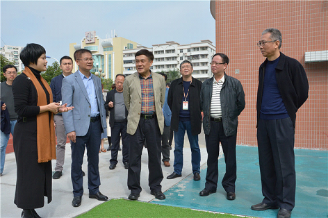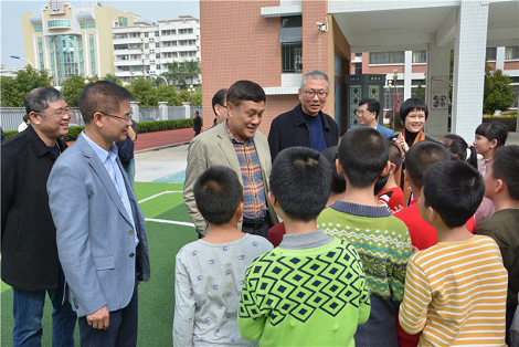 在金暉小學,林依民副市長參觀了校園,興趣勃勃地與在操場上活動的小朋友們進行互動,勉勵孩子們好好學習、積極鍛煉、快樂成長,引得孩子們一陣歡呼雀躍!隨后,林副市長一行參觀了學校的文化長廊、小小消防室等教育教學設備設施,對金暉小學鮮明的辦學特色及取得的亮麗成績表示贊賞。金暉小學作為獨立辦學僅三年的新學校,辦學特色鮮明,剪紙、燈謎、民樂等充滿生命力的人文課程和“家長進課堂”特色活動開展有聲有色,校園足球迅速崛起捧回市賽獎杯,安全文明校園創建工作出色獲評“廣東省交通安全文明示范學校”,“家長聯誼會”工作模式入選教育部德育工作典型經驗。
