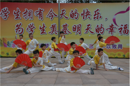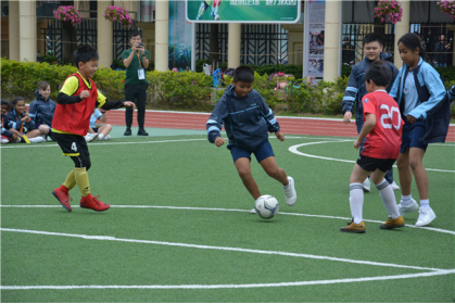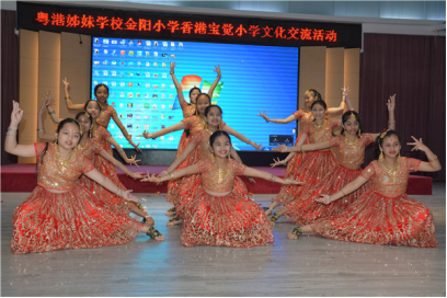 隨后,兩校師生在操場合影留念,并舉行了足球友誼賽,一同觀看武術表演。在一樓多功能廳,活動雙方互贈了紀念品,并觀看金陽小學教育集團總校學生表演的歌舞、朗誦、潮劇等形式多樣的節(jié)目。寶覺小學也帶來了他們的節(jié)日活動視頻,與金陽師生分享其國家節(jié)日慶祝活動的快樂,小姑娘們還激情演繹了一段印度舞蹈。兩校學生還通過游戲互動的形式,增進友誼。