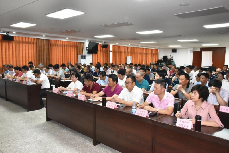 區教育局班子成員、各股室負責同志,區教師發展中心主任,外砂、新溪教育指導組負責人,各教育集團總校長、各中小學校校長、各培訓機構負責人參加了今天的會議。