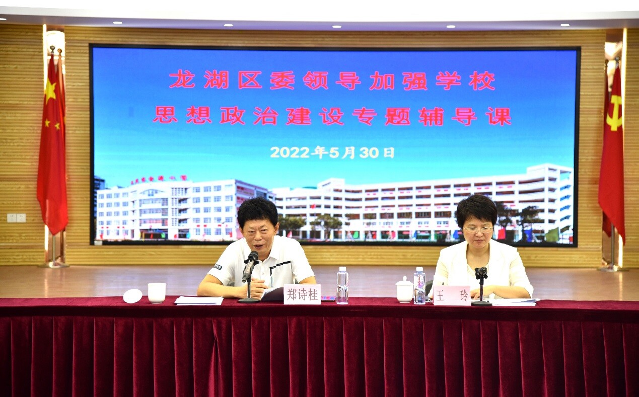 會上,區教育局主要領導要求,金濤小學教育集團要認真領會鄭詩桂同志輔導課精神,高度重視學校思想政治課建設,愛崗敬業,樂學善教,因地制宜,切實抓好學校思政課建設工作,全面落實立德樹人根本任務,培養德智體美勞全面發展的社會主義建設者和接班人,為打造龍湖教育新高地作出應有的貢獻。