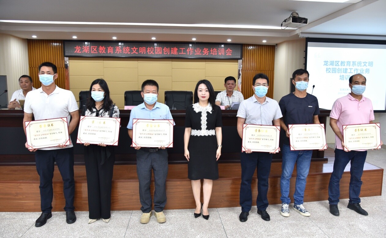 會議為我區在第三屆汕頭市文明校園評選中獲得“汕頭市文明校園”稱號的學校代表頒發了榮譽證書和牌匾。近年來,在區委區政府的高度重視下,在區教育系統廣大師生員工的不懈努力下,龍湖區教育系統的文明校園創建工作取得了良好的成績。目前,區內擁有國家級文明校園1所,國家級先進單位1所,省級文明校園3所,市級文明校園38所,區級文明校園已實現全覆蓋。
