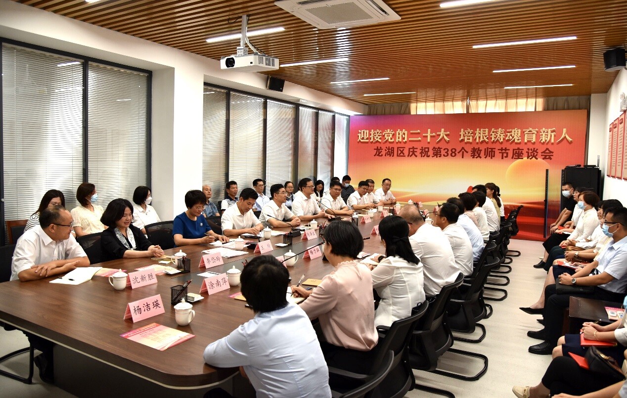 今年教師節期間,區教育局以“迎接黨的二十大 培根鑄魂育新人”為主題,組織了系列慶祝活動:選樹典型,開展“三名”評選活動,表揚各類優秀個人、集體;攝制龍湖教育宣傳片《踔厲奮發、篤行不怠》;組織師生優秀文藝作品線上展演;關心慰問部分教師等。