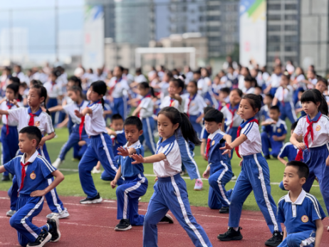 訓(xùn)練中,我見證孩子們從零基礎(chǔ)到與同伴默契合奏,見證他們?nèi)绾斡苗H鏘鼓點與嘹亮號聲征服烈日與暴雨。在日復(fù)一日的訓(xùn)練中,大隊部全體老師凝心聚力,全程陪訓(xùn)。他們用行動證明:德育不只是對學(xué)生意志的錘煉,更是教師身正為范的正向傳遞。
