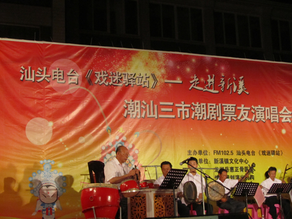 演唱會(huì)在一曲耳熟能詳?shù)摹短K六娘》唱段“春風(fēng)踐約到園林”中拉開了序幕。來自新溪鎮(zhèn)本土的元興樂社、中心樂社、岳惠正骨醫(yī)院共組織了13個(gè)節(jié)目,另外來自汕頭、潮州、揭陽三市票友也不甘落后,相繼登臺(tái)奉獻(xiàn)精彩表演。市戲校林潔老師、廣東潮劇一團(tuán)林初發(fā)老師的特邀加盟,更讓演唱會(huì)高潮跌起。演唱會(huì)在潮州音樂《畫眉跳架》中拉下帷幕。
