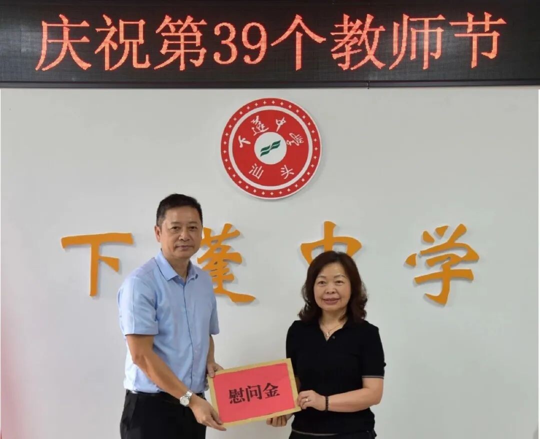 在第39個(gè)教師節(jié)來(lái)臨之際,9月8日上午,市人大常委會(huì)林曼副主任帶隊(duì)到下蓬中學(xué)開(kāi)展教師節(jié)走訪慰問(wèn)活動(dòng),代表市委、市人大常委會(huì)、市政府,向?qū)W校全體老師致以節(jié)日的問(wèn)候和崇高的敬意。市人大常委會(huì)副秘書(shū)長(zhǎng)王貴元,市委組織部副部長(zhǎng)、老干部局局長(zhǎng)盧惠群,市民政局長(zhǎng)李珩、龍湖區(qū)人大常委會(huì)主任謝宋彪、市教師發(fā)展中心主任林惜平、龍湖區(qū)教育局局長(zhǎng)王玲以及市、區(qū)相關(guān)部門(mén)同志陪同走訪。