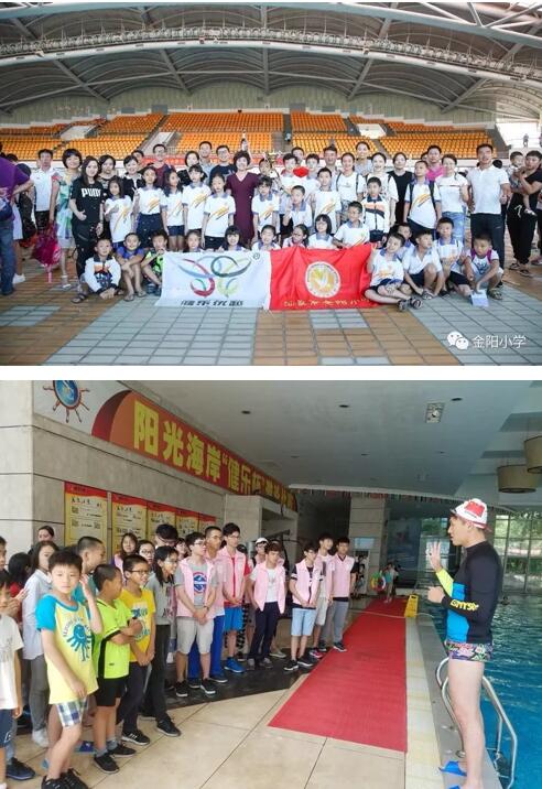 人的生命只有一次,當危險來臨時,自身的生存技能尤為重要。為此,金陽小學發揮“汕頭市游泳訓練基地”的優勢,與專業游泳教學機構合作,率先開展“游泳進課堂”活動,讓金陽的每個孩子都能掌握游泳的生存技能,讓孩子終身受益!2018年5月,學校委托汕頭市健樂青少年體育俱樂部,于二年級開展課后游泳普及班,得到廣大家長的積極響應,報名學習人數多達100多人。至目前為止,普及班已有80多名學生通過游泳考核,取得汕頭市游泳協會頒發的D級證書。