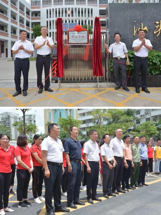 隨后,龍湖區委常委、區政府黨組副書記孫健文,市教育局副局長謝崇,龍湖區教育局局長楊育群,金暉小學校長楊德文共同為“交通安全文明示范學校”揭牌。