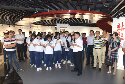 而當天下午區委書記林定亮主講的思政課,則是汕頭市首位區委書記為師生代表上思政課,也是龍湖區在學校思想政治理論課建設上的一種創新探索。在區黨史館內,林定亮還親自當起了“講解員”,帶領數十名與會的師生代表在區黨史館內參觀學習。他結合自己的求學和工作經歷,如數家珍般地熟絡地介紹起我黨成立以來走過的每一個重要的歷史節點,讓廣大師生了解中國共產黨領導下的新中國站起來、富起來、強起來的歷史,了解溫習中國共產黨從萌芽到不斷發展壯大的曲折歷程,感悟中華民族實現從量變到質變的偉大飛躍,并不時提出自己的學習見解和心得,與在場師生分享了對學校思想政治理論課建設的看法,同時就學校如何更好地在教研、教學中開展思想政治理論課進行深入探討。
