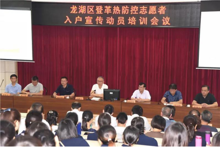 8月22日上午,龍湖區登革熱防控志愿者入戶宣傳動員培訓會在林百欣科技中專舉行。會上宣布,即日起至8月28日,區委從區教育系統9所學校抽調200名黨員教師、入黨積極分子和志愿者到新津街道片區進村入戶宣傳登革熱防控工作,發揮先鋒模范作用,全力打好打贏登革熱防控攻堅戰。