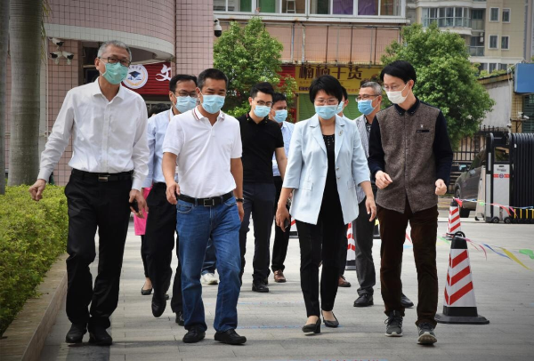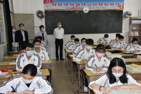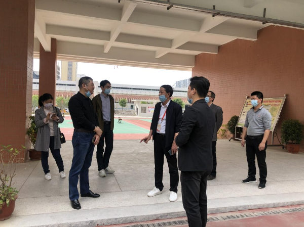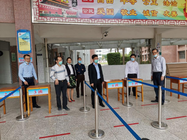 復(fù)課第一天,區(qū)委副書記、代區(qū)長柯延鵬,區(qū)委常委、區(qū)政府黨組副書記孫健文一早便深入?yún)^(qū)內(nèi)部分學校調(diào)研疫情防控及開學復(fù)課工作。柯延鵬一行先后來到廣二師龍湖附中和豐華學校,深入了解學校各項防控措施,聽取疫情防控和開學復(fù)課準備工作介紹,實地查看校門口、教室、食堂、宿舍、隔離室等場所的防控措施落實情況,關(guān)心師生身心健康。柯延鵬強調(diào),初三、高三年級首先復(fù)課開學,校園防疫和復(fù)學工作任務(wù)艱巨,各學校要把師生生命安全和身體健康放在第一位,科學謀劃、精準施策、壓實責任,嚴格落實關(guān)于開學的各項方案、預(yù)案、措施,筑牢校園健康安全防線。