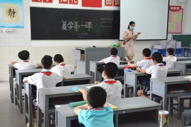 早上七點鐘剛過,迫不及待想要上學的同學們陸續出現在各學校門口。在老師們的引導下,孩子們測溫、洗手,有序進入校門,分通道回教室……校園里重新響起了朗朗書聲。錯峰返校、分小班教學、查看健康卡、體溫檢測、雙手消毒,各學校在每個環節都進行了精心安排。由于天氣非常炎熱,且有強對流天氣出現,各學校還專門設立了入校綠色通道,對入校體溫檢測點進行靈活安排,積極應對惡劣極端天氣的干擾。