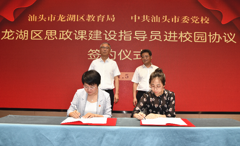 5月15日,龍湖區思政課建設指導員進校園活動啟動儀式暨思政課建設講座在龍泰小學會議廳舉行,龍湖區與汕頭市委黨校有關領導現場簽訂了協議書,聘任市委黨校9名優秀教師為思政課指導員,負責指導和提升龍湖區八大教育集團及民辦學校、教育培訓機構的思政課建設工作。