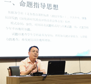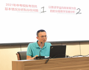 區教師發展中心副主任李彥泓對本次模擬考作綜合分析。他列舉了本次區初三模擬考的一系列詳細數據,借助數據圖表,深入淺出地分析了當前我區初三備考教學存在的問題,并針對性地提出了解決這些問題的具體意見。