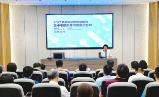 為切實做好2021年中考備考工作,探討備考質量提升新路徑,提高備考效率,5月19日,龍湖區在林百欣中學(金暉校區)舉行2021年初中協同教育暨中考模擬考試質量分析會。區教育局有關領導,區教師發展中心相關領導、學科教研員,各初中學校校長、完全中學分管教學副校長及相關人員參加會議。會議由區教師發展中心主任李岱玲主持。