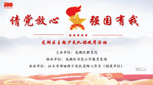 為深入學(xué)習(xí)貫徹習(xí)近平總書(shū)記在慶祝中國(guó)共產(chǎn)黨成立100周年大會(huì)上的重要講話精神,推動(dòng)黨史學(xué)習(xí)教育在廣大青少年中走深走實(shí),教育引導(dǎo)少先隊(duì)員了解黨的光輝歷史、感悟黨的初心使命、傳承黨的紅色基因,增強(qiáng)聽(tīng)黨話、感黨恩、跟黨走的思想自覺(jué)和行動(dòng)自覺(jué),10月19日上午,龍湖區(qū)教育局在丹霞小學(xué)504中隊(duì)舉行了“請(qǐng)黨放心,強(qiáng)國(guó)有我”主題少先隊(duì)活動(dòng)。