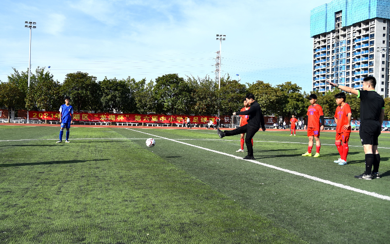 隨后,運動員代表、裁判員代表現場宣誓,區領導陳澤波為比賽開球。首場比賽開始,由翠英中學初中男子隊對陣漁洲中學隊,兩支隊伍在綠茵場上展開激烈拼搶。最終,漁洲中學隊技高一籌,取得首場勝利。
