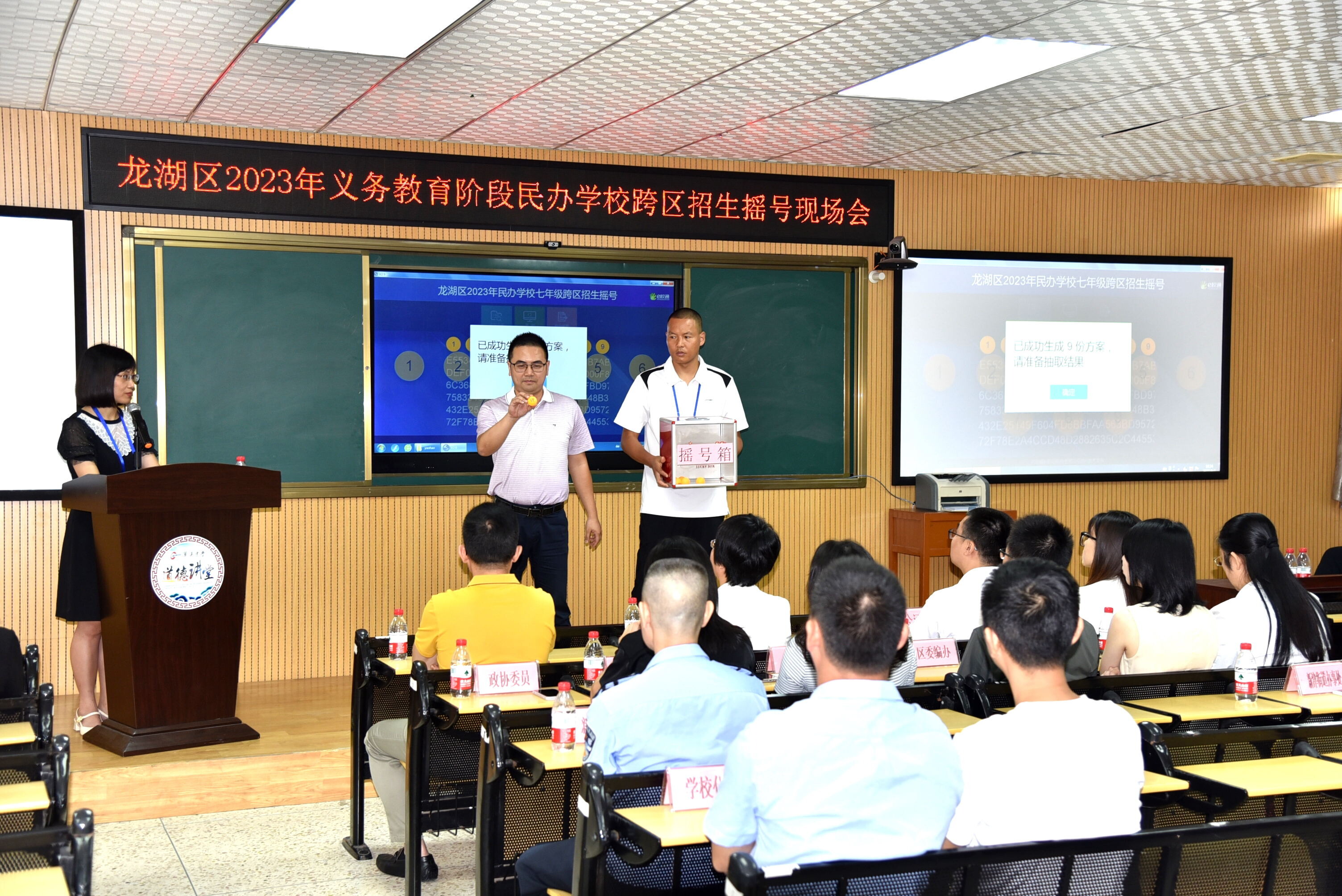 8月1日上午,龍湖區招生工作領導小組在翠英中學舉行2023年義務教育階段民辦學??鐓^招生搖號現場會,對報名人數超過跨區招生計劃數的龍湖區碧華實驗學校采用電腦隨機搖號方式進行跨區招生錄取。