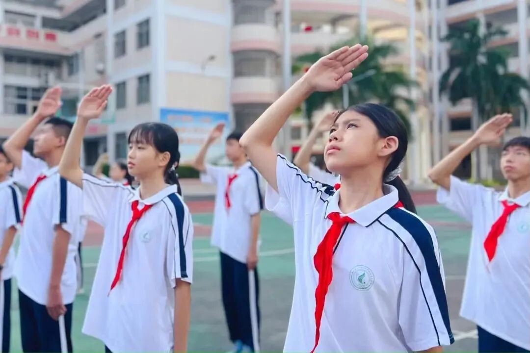 10月1日,廣東第二師范學(xué)院龍湖附屬中學(xué)舉行了莊嚴的升國旗儀式。參加儀式的全體人員面向國旗,肅然而立,齊唱國歌,表達對五星紅旗的崇高敬意和對祖國母親的深情祝福。(彭揚)