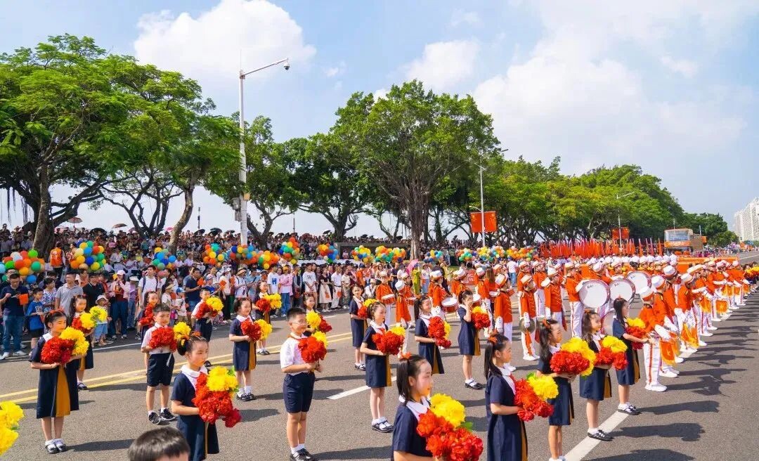 10月1日上午,汕頭市國慶巡游拉開序幕,50名金陽小學(xué)儀仗隊隊員奏響《歡迎曲》!在《我是未來》的樂聲中,100名金陽娃組成的花束隊閃亮登場。他們揚著燦爛的笑臉,舞動最靚新時代!那抹涌動著的中國紅,恰如金陽娃們一片赤誠的愛國心!(王梓燁)