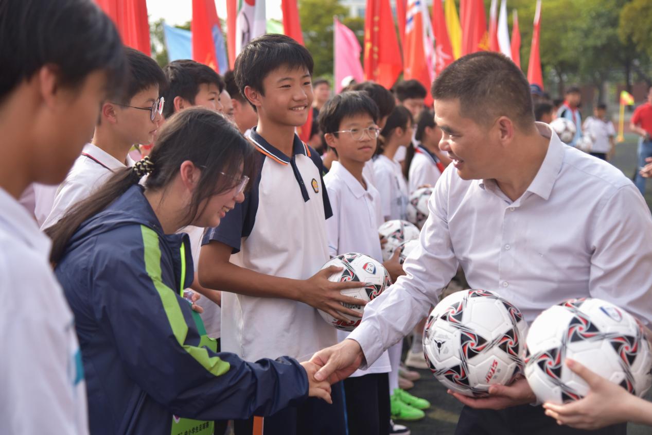 閉幕式現場,黃曉歡區長向各校球隊代表贈送親筆簽名足球,勉勵學子“永葆拼搏初心,再攀競技高峰”。