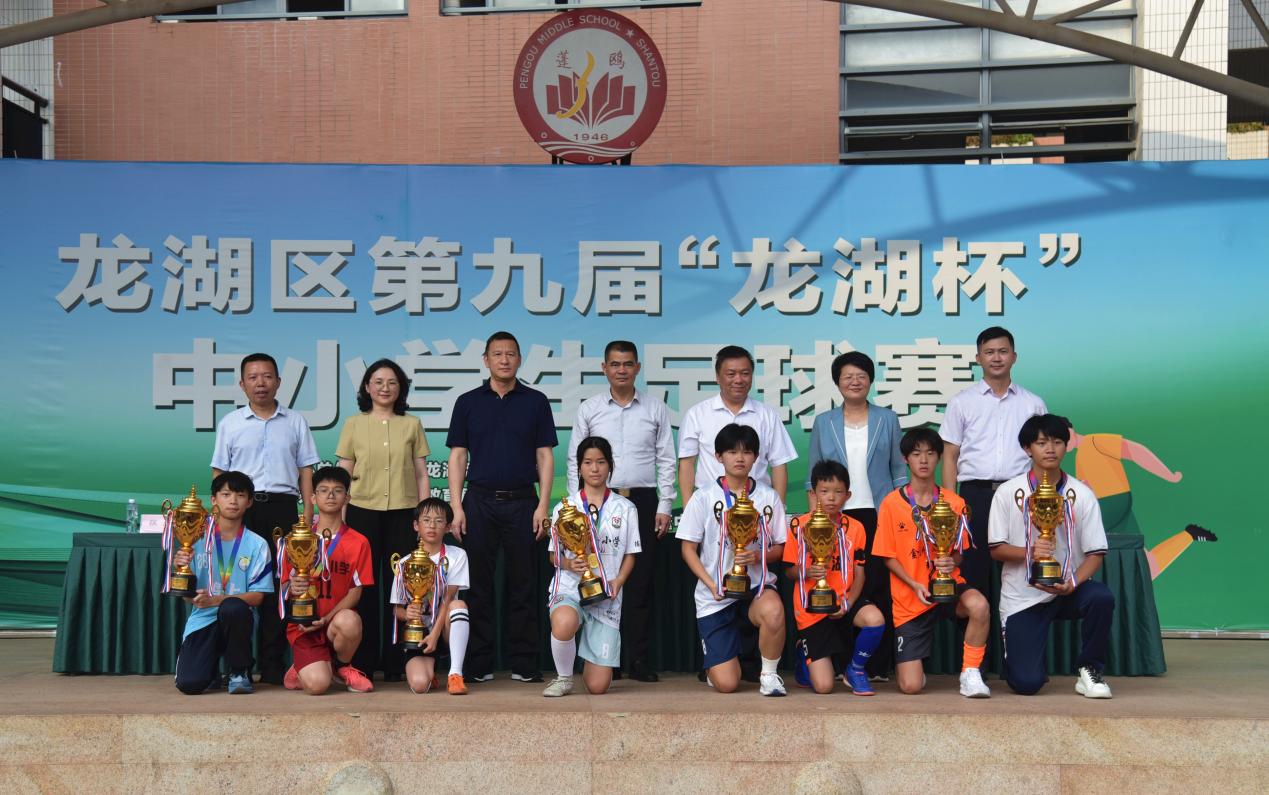 6月5日下午,隨著最后一場決賽的終場哨響,龍湖區第九屆“龍湖杯”中小學生足球賽在蓬鷗中學運動場圓滿閉幕。龍湖區政府主要領導、區分管領導,市教育局有關領導,以及市、區各相關單位負責同志出席閉幕式,并為獲獎單位和選手進行頒獎。