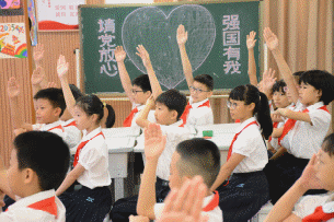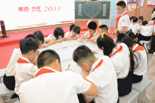 2035年,我國將全面建成社會主義現代化強國。隊員們對于美好的未來有無限遐想,他們在愛心卡上寫下了未來的規劃,在節奏明快的歌聲中,將自己的夢想展示在黑板上。