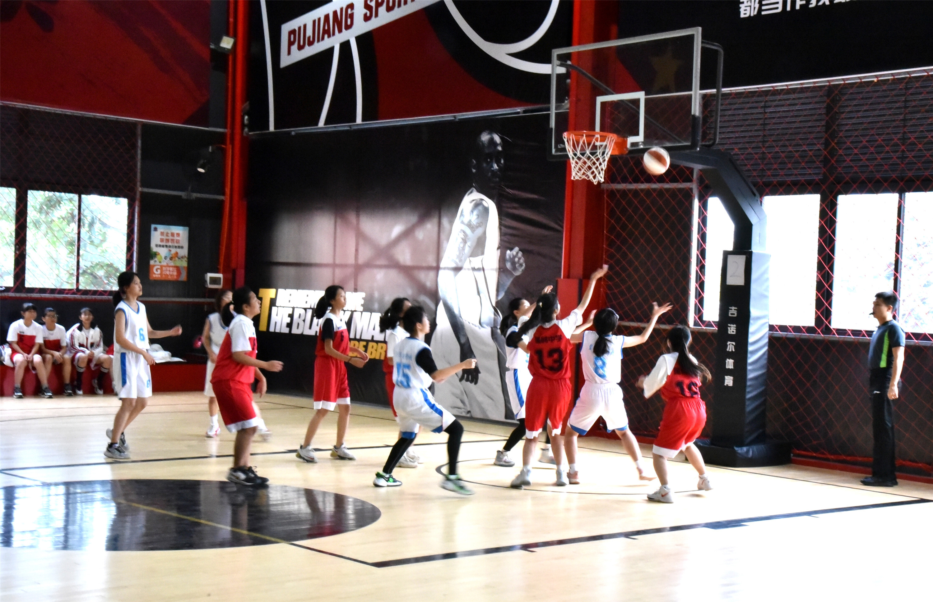 比賽首場(chǎng)是女子組蓬鷗中學(xué)對(duì)陣碧華實(shí)驗(yàn)學(xué)校,雙方球員斗志昂揚(yáng),奮力拼搏,力爭(zhēng)上游。進(jìn)攻、防守、投籃,進(jìn)退有序,爭(zhēng)奪激烈。碧華實(shí)驗(yàn)學(xué)校率先得分,比分一路領(lǐng)先;蓬鷗中學(xué)不甘落后,奮勇直追。場(chǎng)上雙方對(duì)攻不斷,場(chǎng)外掌聲、喝彩聲連連,雙方拉拉隊(duì)搖旗吶喊,為己方隊(duì)員加油鼓勁。經(jīng)過緊張激烈的對(duì)戰(zhàn),碧華實(shí)驗(yàn)學(xué)校最終以大比分贏得第一場(chǎng)比賽的勝利,取得開門紅。開賽首日,浦江運(yùn)動(dòng)中心兩個(gè)比賽場(chǎng)地先后進(jìn)行了八場(chǎng)比賽。