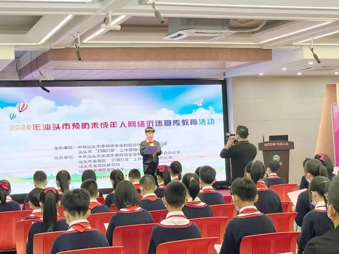 37日下午,金珠小學開展2022年度汕頭市預防未成年人網絡沉迷宣傳教育活動。本次活動由汕頭市委網信辦、汕頭市“掃黃打非”辦及龍湖區委網信辦、龍湖區“掃黃打非”辦、龍湖區教育局聯合舉辦,市、區各相關單位領導及金珠小學部分師生現場參加,學校其他師生以網絡直播的方式在各班參與學習。