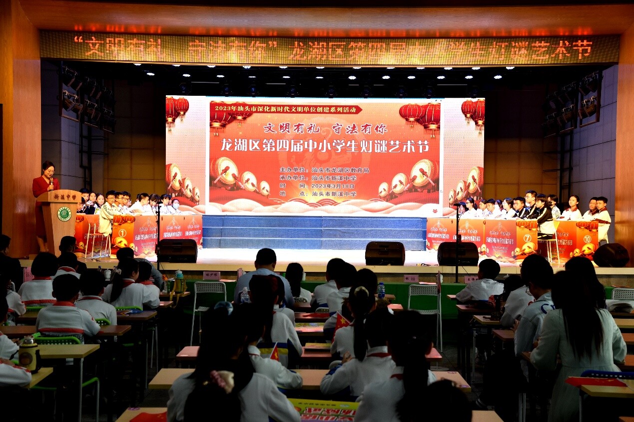 3月18日,由汕頭市龍湖區教育局主辦、新溪中學承辦的龍湖區第四屆中小學生燈謎藝術節在新溪中學舉行。本次活動主題是“文明有禮 守法有你”,旨在深化文明禮儀教育和法治宣傳教育,深化新時代文明單位創建系列活動,推進“傳承文化揚國粹”燈謎進校園系列活動,打造龍湖區教育系統未成年人思想道德建設常態化工作品牌。區委常委、區黨政辦主任陳澤波,區教育局班子有關領導觀看比賽并為獲獎代表隊、選手頒獎。