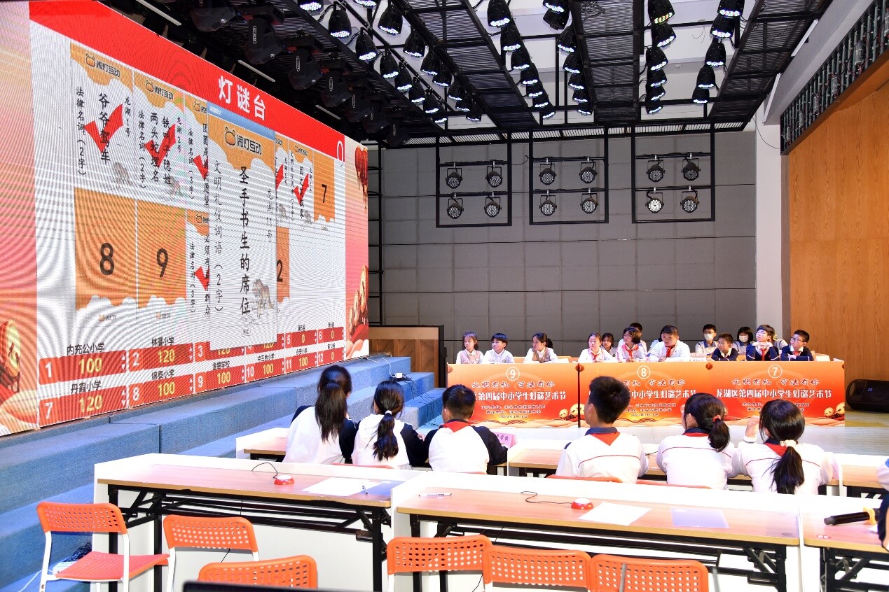 來自龍湖區18所中小學的21支燈謎代表隊參加了本次活動。當天上午舉行了初賽,形式為個人筆猜,決出個人一、二、三等獎;下午舉行團體電控搶猜決賽,比賽分中學組、小學組兩個學段進行。電控賽現場,鼓聲咚咚,小虎將們搶答題連報中的,歡呼聲不絕于耳。你一題、我一道,從頭搶答到尾,斗智斗勇,表現出很高的競技水平。比賽過程十分激烈,懸念迭生,扣人心弦,催人奮發。中學組世貿實驗學校實力超群,逆轉強隊龍湖實驗中學,終于拔得頭籌;小學組競爭激烈,丹霞小學與金暉小學實力不相上下,比分交替上升,這邊丹霞選手連連得分,那邊金暉虎將奮起直追,最后驚險逆襲,帶動了全場一陣又一陣的熱烈喝彩聲。